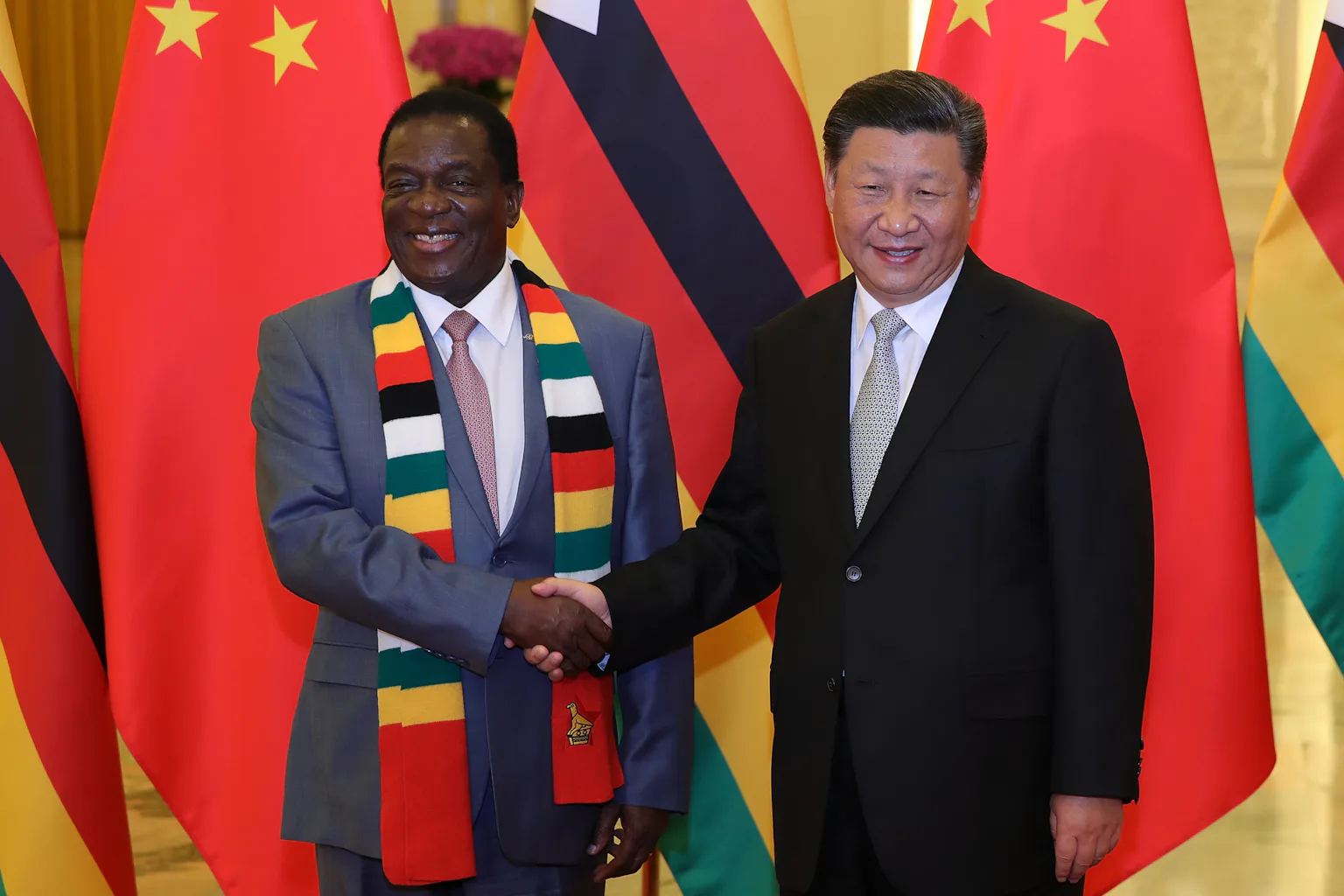 L-R Zimbabwe’s President Emmerson Mnangagwa and Chinese counterpart President Xi Jinping. (Photo Credit: EPA-EFE/Lintao Zhang / POOL)
