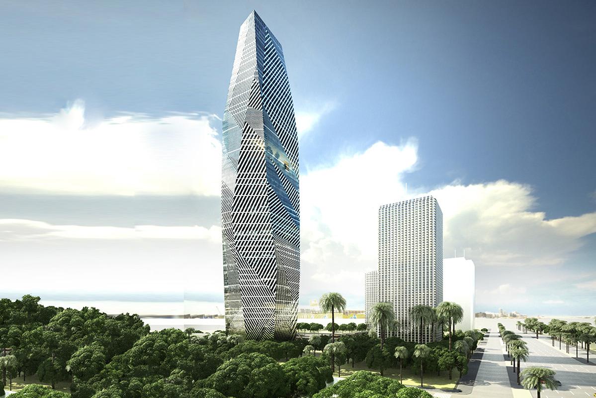 The F Tower, located in the Plateau district of Abidjan, Ivory Coast, is projected to become the tallest building in Africa. The office building is anticipated to reach a height of 421 meters and comprise approximately 75 stories.
